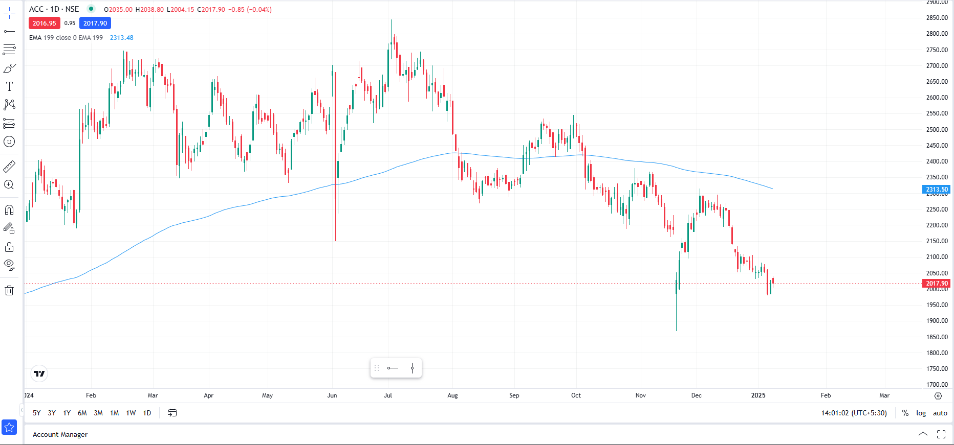 chart = tsl.get_historical_data(tradingsymbol = ‘ACC’,exchange = ‘NSE’,timeframe=“DAY”)
